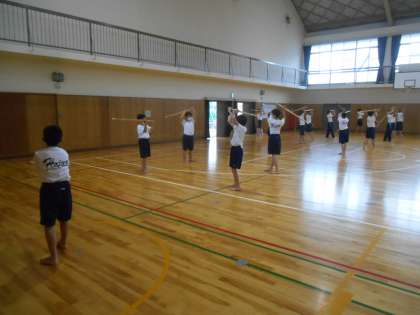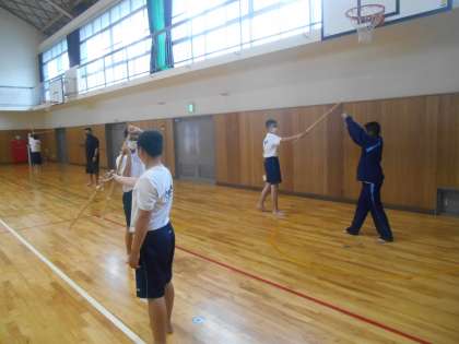 剣道です。だんだん本格的な練習となってきました。今日は、竹刀を竹刀で打つということにチャレンジしました。