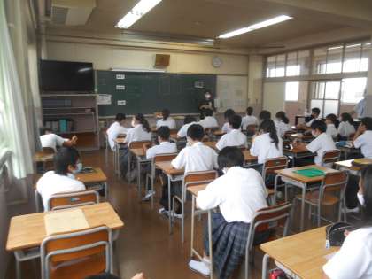 6限の特活です。1年生ではSNSの長所、短所、マナーについて考えてみました。とても大事な授業でした。