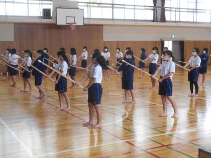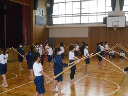 これは女子体育です。竹刀を持つと、きりっとしますね。