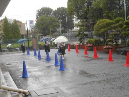 梅雨です。今日も雨です。生徒は元気よく登校してきました。