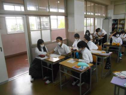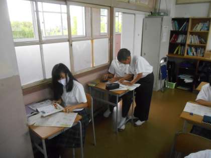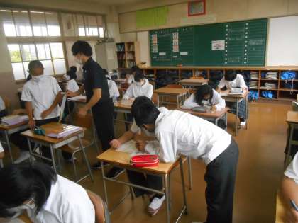 単元末テストに向けて準備(勉強)をしていました。見てください。あちらこちらで、学び合いがガンガン進んでいます。教えている人も頭が整理できて賢くなります。すばらしい。