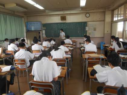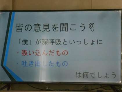 同じく「銀色のシャープペンシル」を読んでいろいろ考えました。自分の中の悪の心、全の心が闘い合った人もいたと思います。黒板いっぱいに意見が書かれていました。