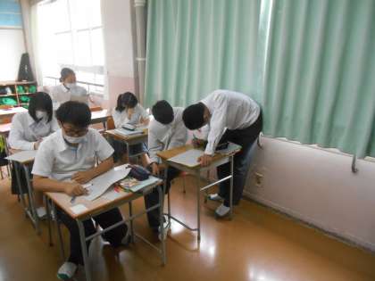 平方根の問題を解いています。あちこちで学び合いが深まっていました。すばらしい。