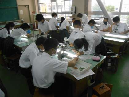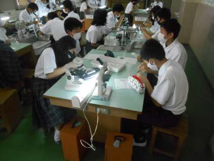 やっぱり、何か具体物、教具などがあると授業が活気づきますね。毎時間というわけにもいいきませんが。一生懸命顕微鏡をのぞいていました。