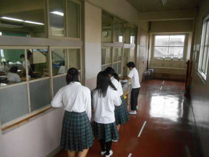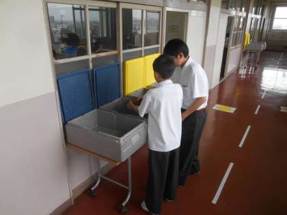 おかずとご飯を持っていくところです。3枚目の人たちは、残ったおかずを「やったー。」「残したらもったいないですよね。」と言いながら持っていくところです。すばらしい。