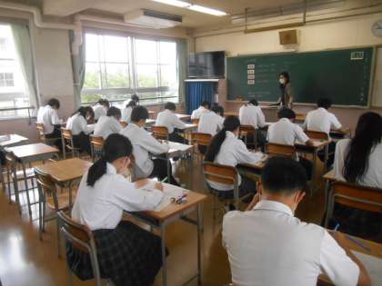 期末テストの二日目です。英語の放送テストが行わていました。廊下では英語の先生が真剣な表情で放送を聞いていました。