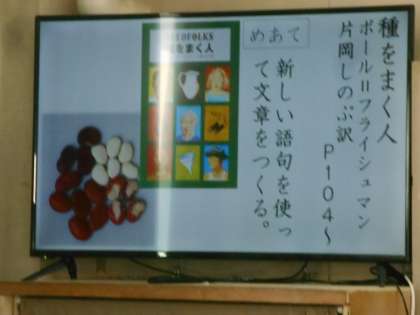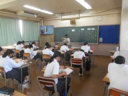2年生の国語です。先生が教科書を読み、生徒がしっかりと聞いています。集中していました。