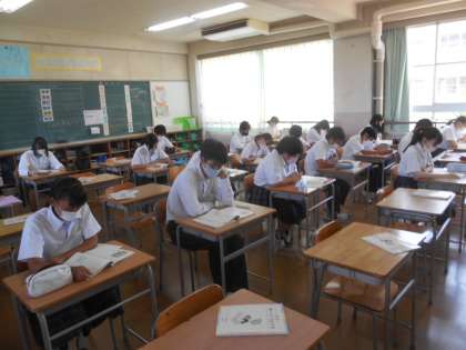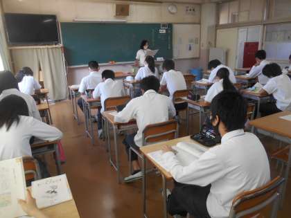 戦前の甲子園のグラウンドキーパーの方の話をもとに、生きるということについて考える授業でした。今の道徳は、先生が答えを用意するのではなく、生徒が教材文から感じたことを教室内で出し合うことで自分の人生が広がるように考えていきます。