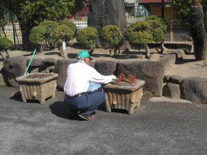 9時30分ごろの写真です。もうしっかりと暑くなっていました。校門から玄関まで美しく、お客様が来られても気持ちがいいです。