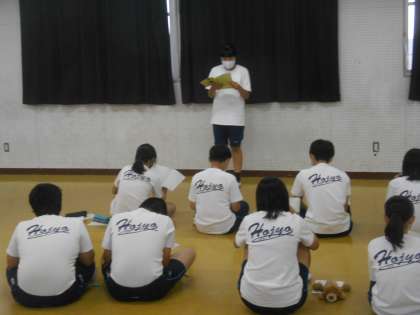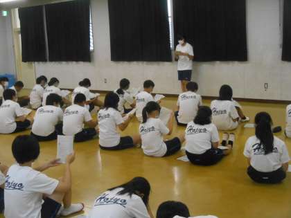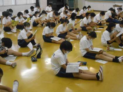 6時間目です。2年生が9月の林間のために、しおりの読み合わせをしていました。担当の生徒が順番に読んでいきました。しっかり読んでいましたよ。