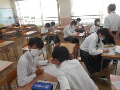 2次関数の問題を解いています。学び合いも始まっています。3年の数学です。