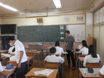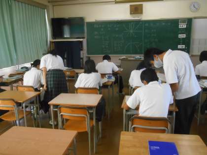 2次関数のグラフについて勉強していました。ここでも学び合いが自然に広まっていました。