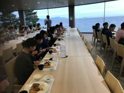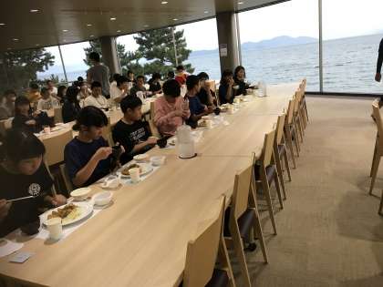 お楽しみの夕食です。魚フライとチキンステーキとサラダ、わかめスープとおひたしでした。おいしかったです。