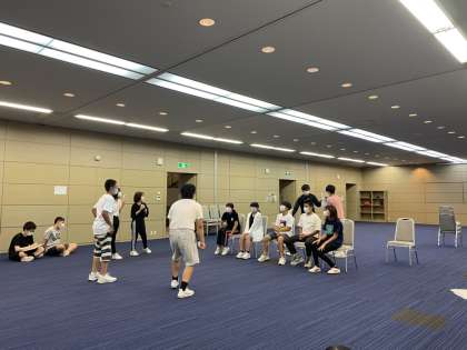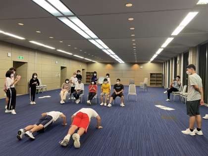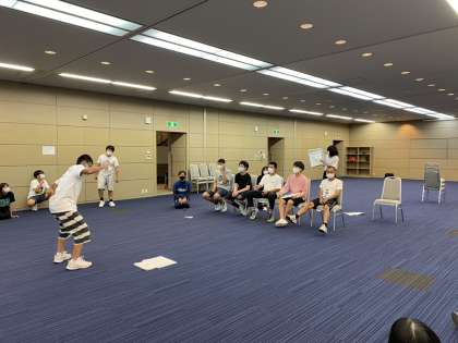 座っている人の後ろにお題が書かれています。それを見てジェスチャーをしています。特に2人一組でジェスチャーで、一つの形をやろうとして爆笑が起こっていました。これでレク大会は終わりましたが、レク係さんは本当にいろいろと準備をしてくれました。ありがとう。おかげさまで、ものすごく楽しい時間を過ごせました。