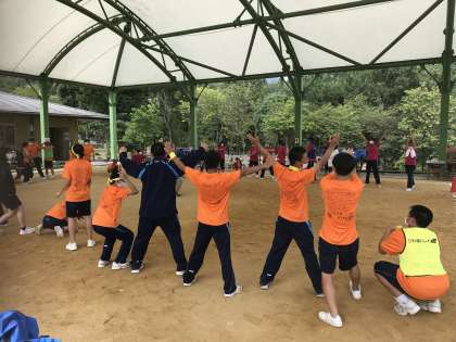 これが特別盛り上がりました、リーダーの人と一斉にジャンケンをして、3回連続勝つと1人10点もらえます。負ければ勝ち、あいこで勝ちのパターンもありました。この比良トピアのスタッフの方から北条中のせいとさんは仲が良いので、とてもいとやりやすいと言っていました。ありがたいことです。