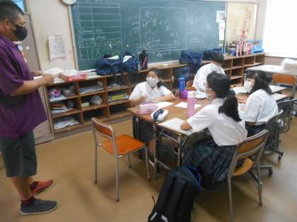 生活委員会と生徒会役員の人たちです。学校全体のいろいろな分野について、各専門委員会が機能的に活動し、より充実した学校生活ができるようにがんばっています。それを統括するのが生徒会役員の人たちです。どちらもすばらしい。
