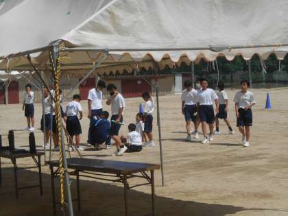 まだまだ暑いです。今日もしっかり休憩を取りながら、タイムを取ったり、バトンリレーの練習をしていました。