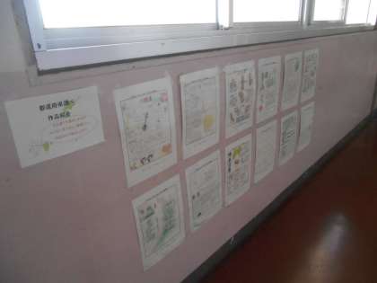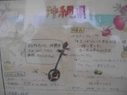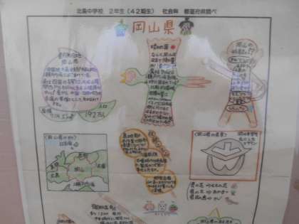 2年生の社会です。3階廊下に都道府県調べの優秀作が掲示されていました。各都道府県の特徴、産業などについて調べてあります。