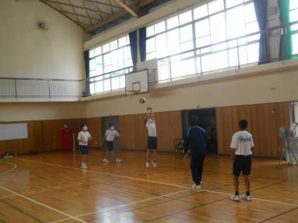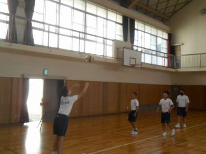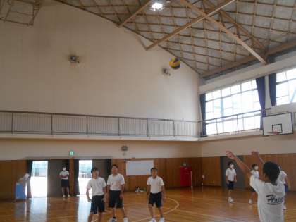 2年生の男子体育です。バレーボールのオーバーハンドパスの練習です。なかなか難しいです。