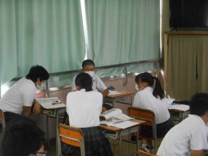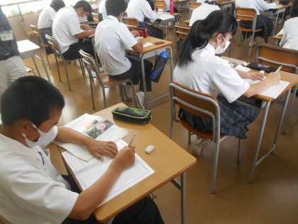 2年生の道徳です。「アンネのバラ」という教材です。「アンネの日記」で有名なアンネです。どうすれば、平和な世の中を築けるのか考える一時間でした。
