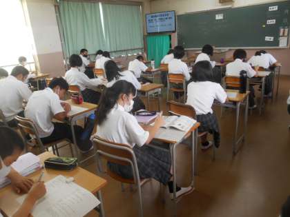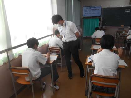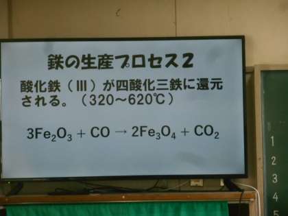 2年生の理科です。化学反応の「酸化」「還元」を勉強していました。教育実習の先生の手作りの画像がテレビに映っていました。その先生が「自分で作ったから、右と左で大きさが違うけど、許してね。」と言っていました。許します。気持ちです、気持ち。