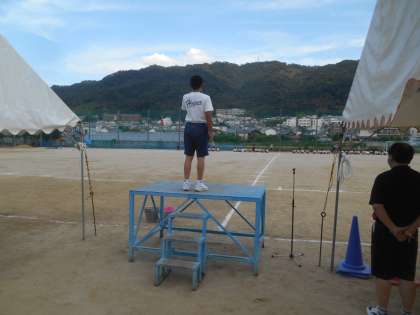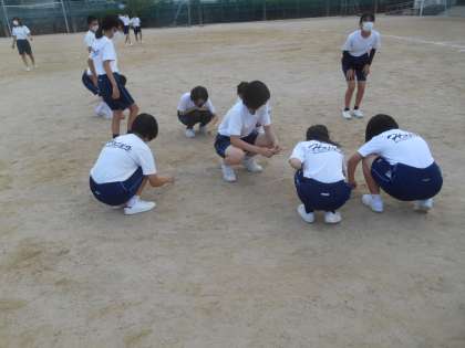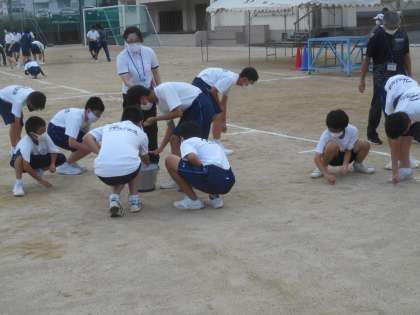 全体で応援席を確認したあと、グラウンドの石を拾いました。生活委員長が諸注意をしてくれました。1枚目。