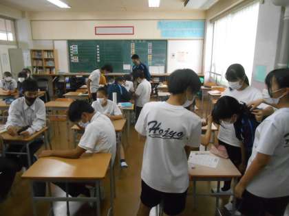 6限に3年生が修学旅行のことで細かいことを相談していました。修学旅行は10月21日〜23日です。