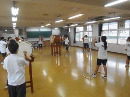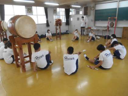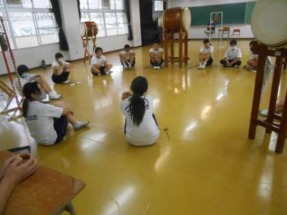 準備のあとに人権クラブの練習が正式に始まりました。太鼓はほぼたたけているので、「気持ちをこめていこう。」という意味で、最後のミーティングで話し合っているところです。