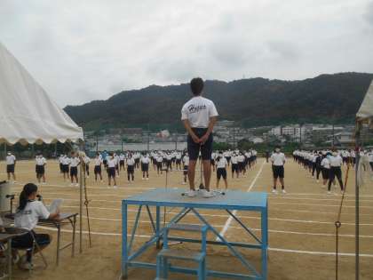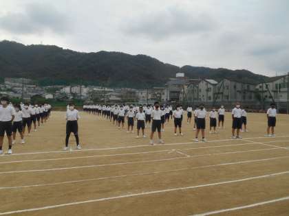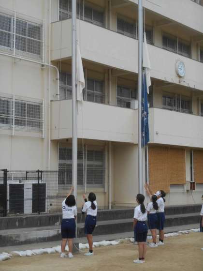 生徒会役員の人たちが旗を揚げています。昨日練習していました。諸注意をしている人です。原稿用紙1枚分くらいの内容をしっかり覚えて分かりやすく伝えてくれました。