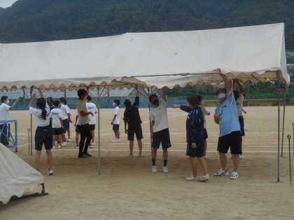 そして、今日もかたづけをしてくれる人たちがいました。大繩をきれいに巻いている人、テントを倒している人、グラウンドの石ころ拾いをしている人たちです。みんな、ほんとうにありがとう。こういうことがあって、体育大会ができるのです。すばらしい。