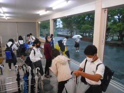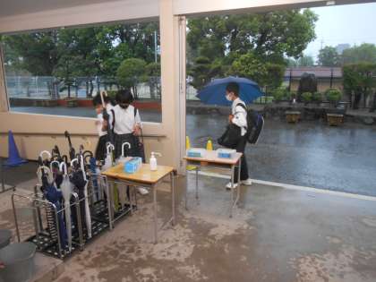 今朝は久しぶりの本降りでした。昨日、体育大会の予行ができてよかったです。