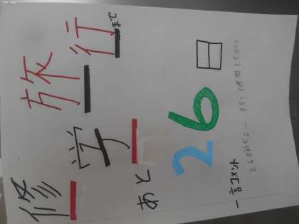3年生の教室(廊下)に掲示してありました。カウントダウンです。