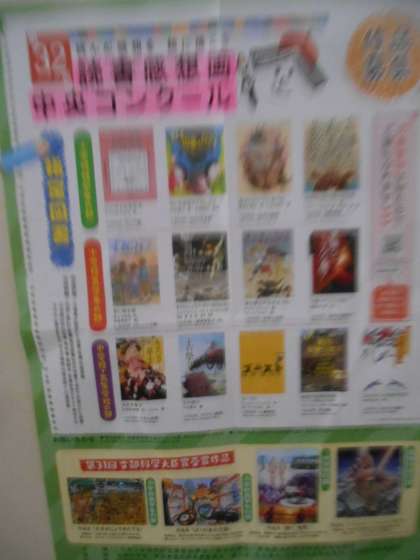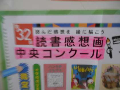 図書室前に掲示してありました。読書感想文ではなく、読書感想画です。毎年応募してくれる人がいます。すばらしい。