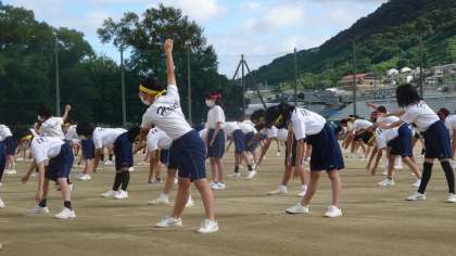 諸注意もしっかり覚えて話してくれました。ラジオ体操は体育の先生も今日は、ほんとにきれいにそろっていたと話していましたよ。すばらしい。