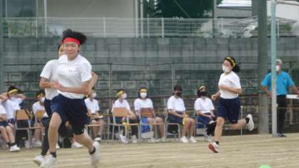 この200mも見ごたえがありました。後半が伸びる生徒はよほど鍛えているのでしょうね。さすがに200mを全力で走れない生徒もいましたが、3月からのコロナの関係で体を動かせていないので、やむを得ないことと思います。でも、全力でした。すばらしい。