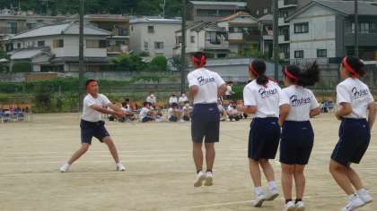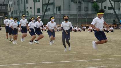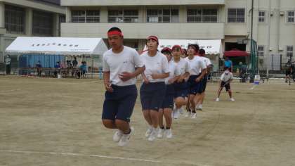 2年です。予行では2年1組が総合優勝でしたが、今日はどうでしたでしょうか。精一杯の競技を見せてくれました。