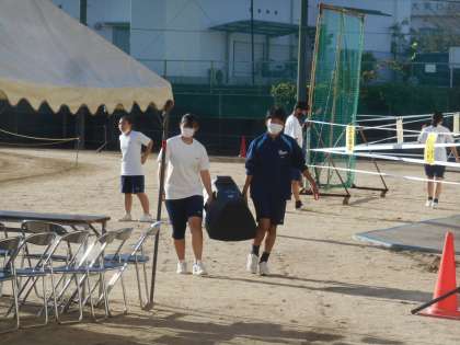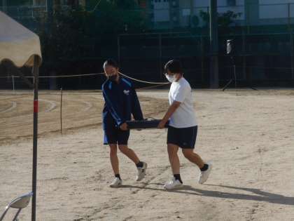 9月27日当日にも体育大会の写真をアップしましたが、今日は別のカメラで撮影したものをアップします。この写真は、報道委員の人たちが当日の早朝より登校して、放送準備をしているところです。ありがとう。