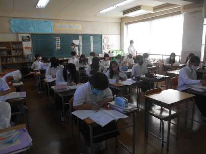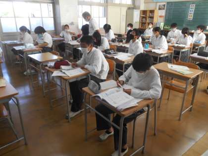 「力」のところを学習し、問題を解いていました。先生が机間巡視し、「できてましねー。」と、つぶやいていました。すばらしい。