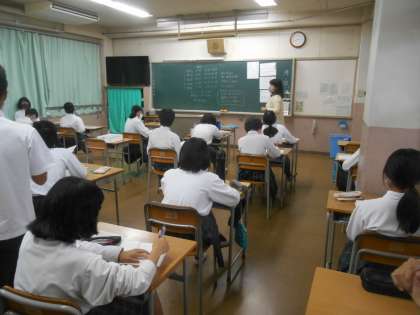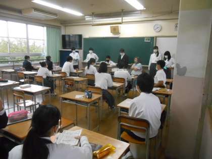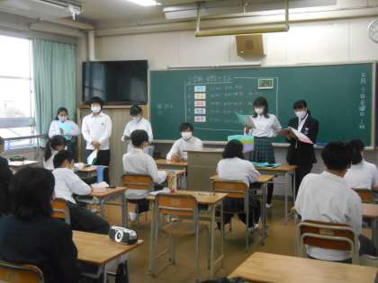 3年生と2年生の終学活の様子です。班長が前に出て、班の反省を発表します。