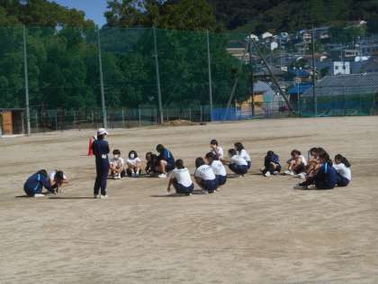 校長つにいると、「がんばれー。」と大きな声が聞こえてきたので、あわてて(2、3枚目)職員室前から撮影しました。2年生女子の体育の陸上の授業です。