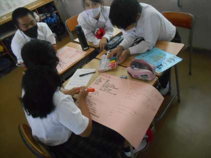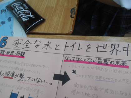 2年生がSDGsについて調べてポスターを作っていました。めちゃくちゃ大事なことです。持続可能な開発目標と言われているSDGsは、日本に住む人だけでなく、世界の人の将来を大きく左右すると言われています。日本であたりまえの飲める水道水、水洗トイレ、医療…。それが世界では当たり前ではないのです。