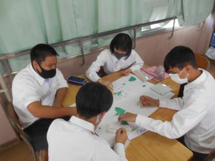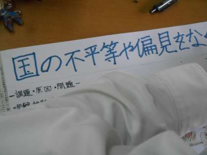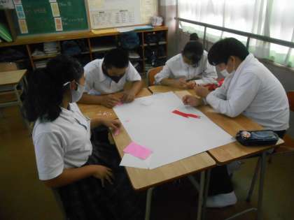2年生の文化祭の取り組みです。SDGsについてポスターを描き、それが終われば、次の作業に入っていました。