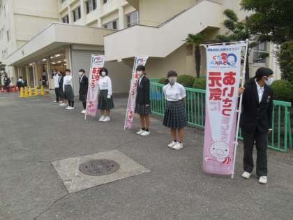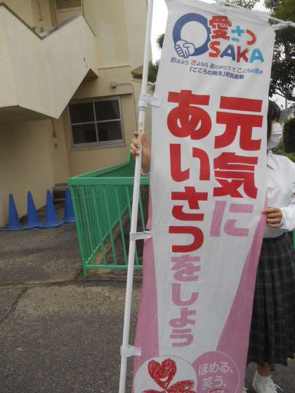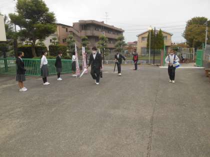 今日から生徒会役員の人と専門委員会の人たちの朝のあいさつ運動が始まりました。新型コロナの感染予防のため、休んでいたのですが、距離をしっかり取って、今日から始めました。参加してくれた人たち、ありがとう。