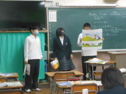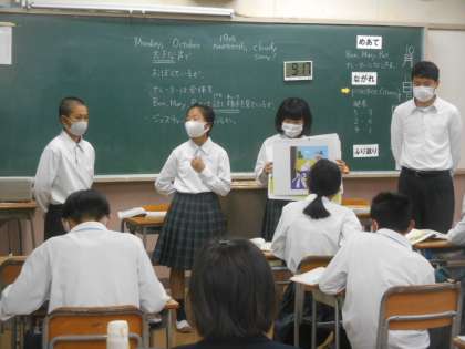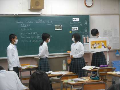 いよいよ発表が始まりました。少し恥ずかしさの残る人もいましたが、一生懸命さは十分に伝わってきました。写真では分かりませんが、ジェスチャーの入る人も何人かいて、やる気を感じました。