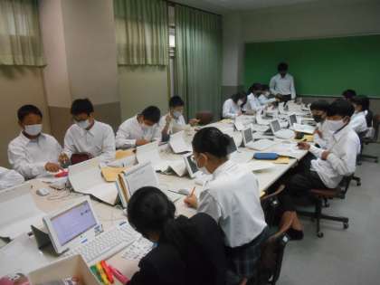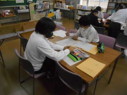 1年生の文化祭の取り組みの様子です。2枚目の写真は、調べたことを丁寧に紙に書いていたので、うれしくなって撮影しました。すばらしい。