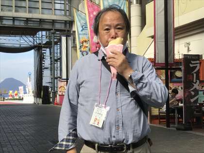 2枚目。この先生には一番似合わないものを食べています。