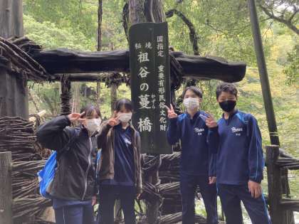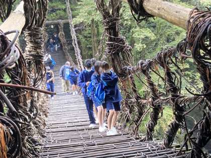 祖谷かづら橋を渡りました。全員が渡りました。