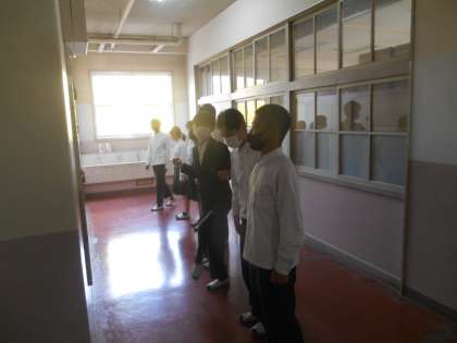 昼休みです。3年生が文化祭に向けてダンス?の練習をするところでした。