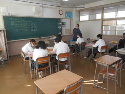 2年生の数学の分割授業(二クラス分)をアップしました。三角形の合同条件を覚えて、そのあとに先生から「言ってごらん、」と指名されているところです。