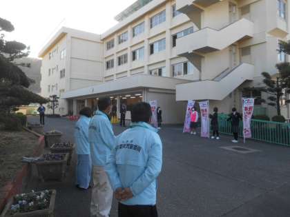 月初めの水曜日は民生児童委員さんが中学校のあいさつ運動に来てくださいます。いつもありがとうございます。地域の方に子どもたちが見守られている感じが直接します。
